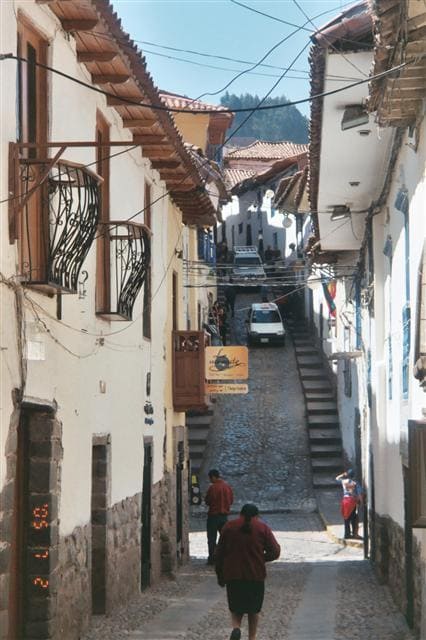 This is one of the narrow streets in Cusco on the way to the San Blas, the district in Cusco where Arturo, Karla’s father, and his family live. The drive up and down those narrow roads with the stone steps on both sides is a real challenge.