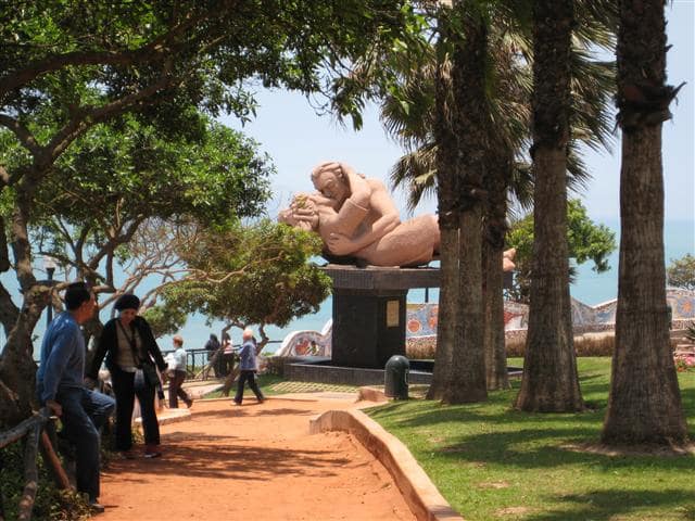 Lima, Peru, the boardwalk in Miraflores overlooking the Pacific Ocean. The sculpture “El Beso” (The Kiss) by Victor Delfín in El Parque del Amor has particular significance for Karla and Andreas.