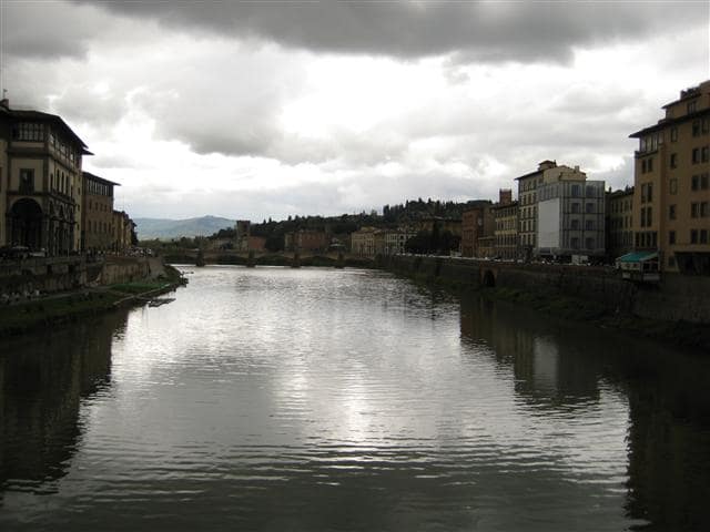 Karla notices that the current of the river Arno changes almost daily. Sometimes it flows smoothly, as in this picture. Sometimes, it is a yellowish twirling mass rushing beneath the bridges. Jean Philippe calls it a “moody river.”