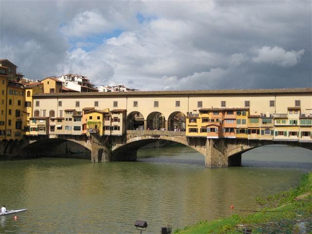 On their way to the studio, Karla and Claudia cross the river Arno on the Ponte Vecchio, the bridge with the many jewelry shops.