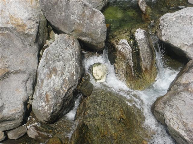 Part of the attraction in the small village of Peccia is the sculpture path. The path leads through the village and the surrounding area and each year, sculptures from different artists are displayed. They are so well integrated into the surroundings that you sometimes miss them. If you look closely, you can see the sculpture of a face in the middle of the creek. Andreas takes Karla to Peccia to show her the sculpture he created for the path.