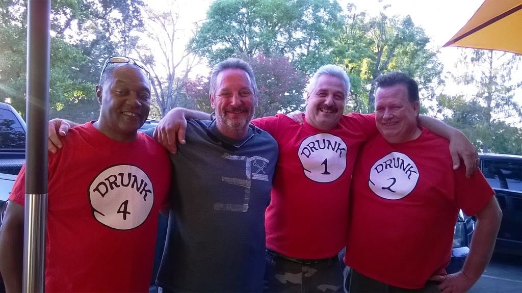 One of these four gentlemen I came across in Paso Robles must have imbibed so much that he forgot to put on his appropriate shirt. He was, in fact, Drunk 3.