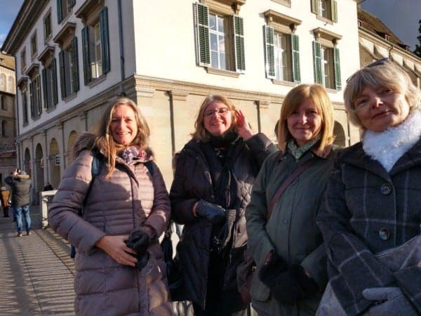 Whoever said Facebook friends are not real friends? I’ve met a bunch of wonderful people on Facebook. A few of them are writers, originally from Scotland and England, who live in Switzerland–Linda Huber, Alison Baillie, Louise Mangos, Cass Grafton. When I come here for a visit, we get together, go for walks through the city of Zurich, talk shop (our writing and publishing), enjoy good food, drink mulled wine (Glühwein) in winter and Prosecco all year round. And, most of all, have a lot of fun!