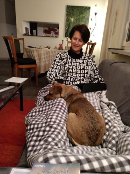 Below are my friend Bente, her daughter, Christina, and Amy, Christina’s dog, And there is snow, finally!