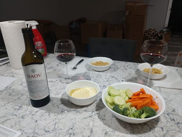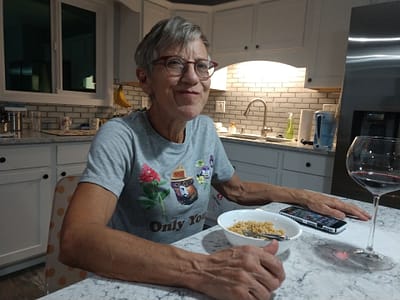 Our first relaxing meal. Aida, Diane’s realtor who got her the house, not only made sure the electricity and the water were turned on and everything was in order but even got us a few bottles of wine and beer! What a kind woman!