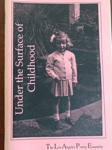 About thirty years ago, four of us poets and artists, Gwynne Garfinkle, Mary Striegel, Ann Braeff and I, founded a group called Los Angeles Poetry Ensemble. We read our poems at different venues in the Los Angeles area and some of us traveled out of state to participate at readings and performances. We created a chapbook of our poems and art work, titled Under the Surface of Childhood.